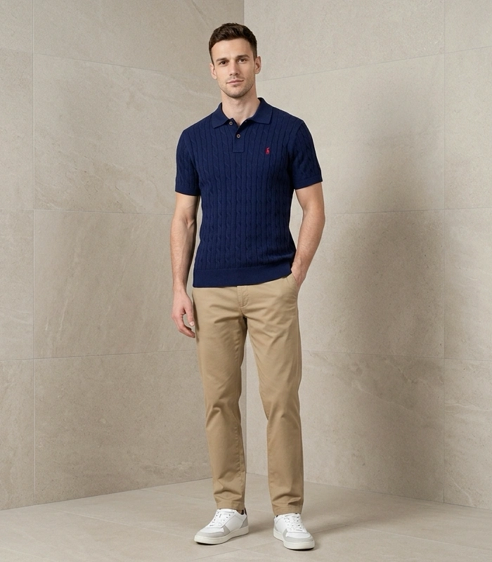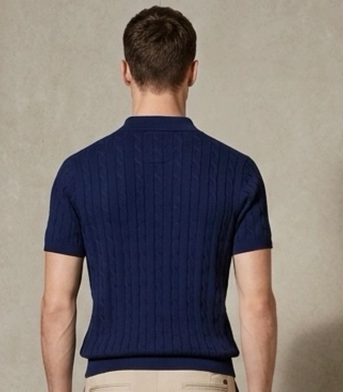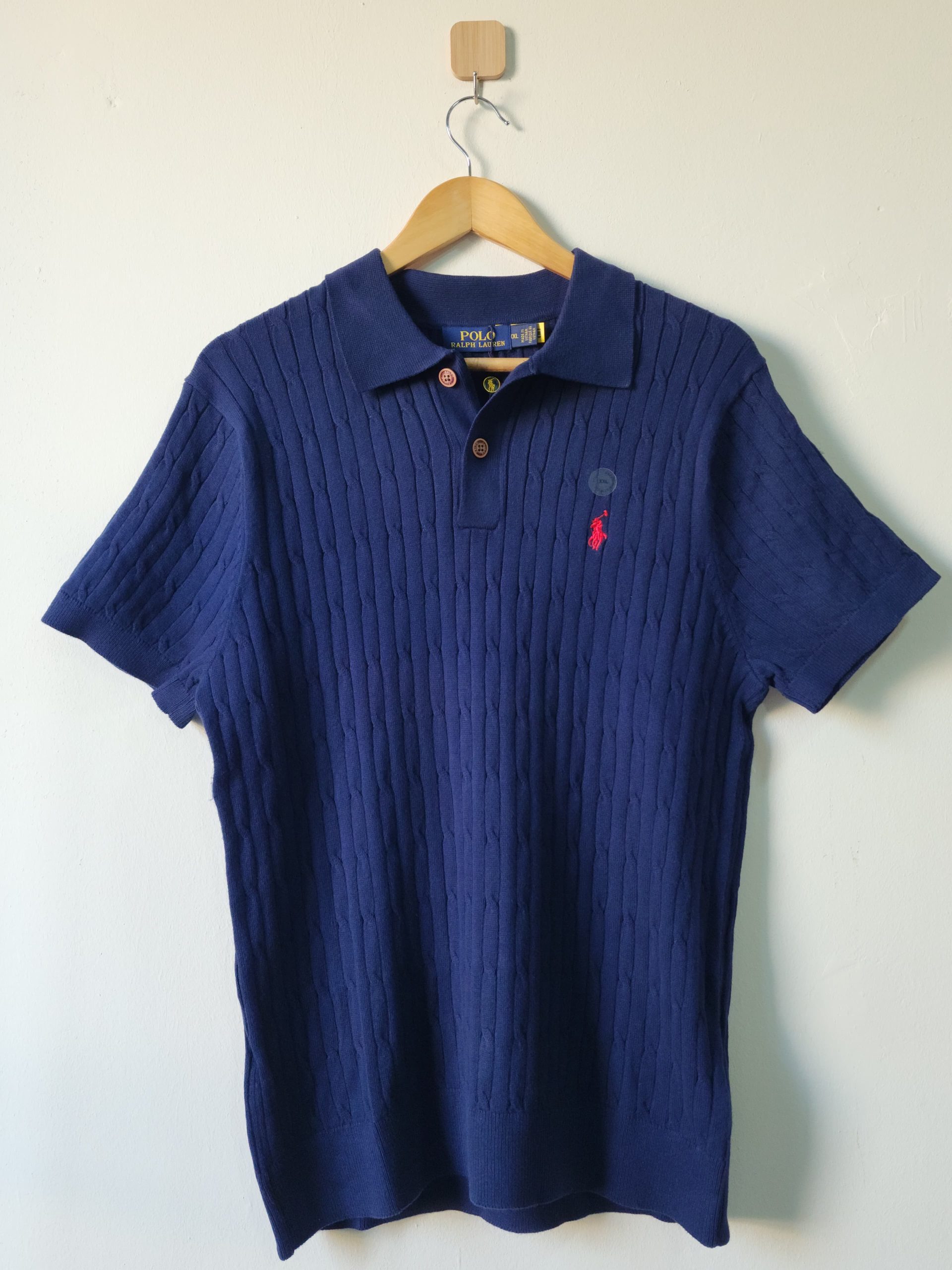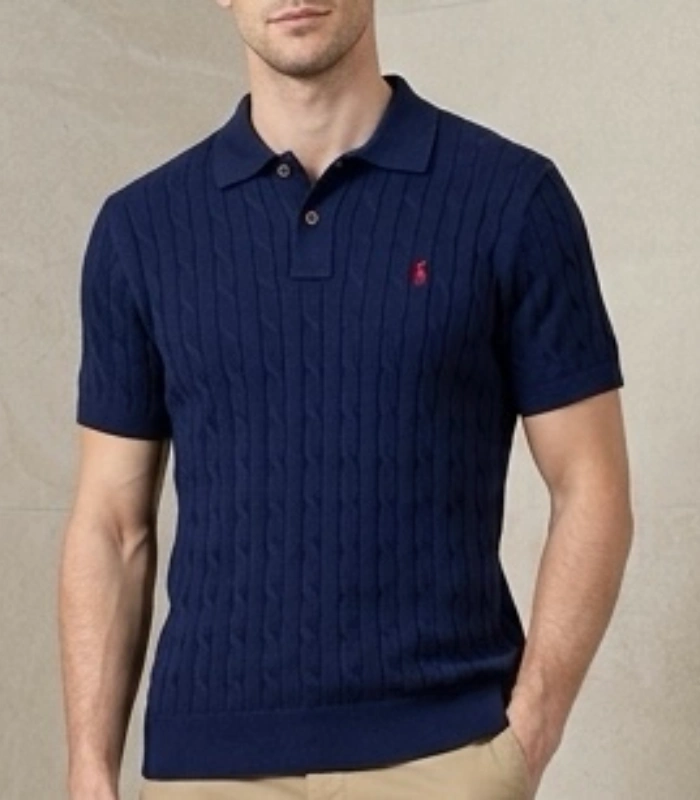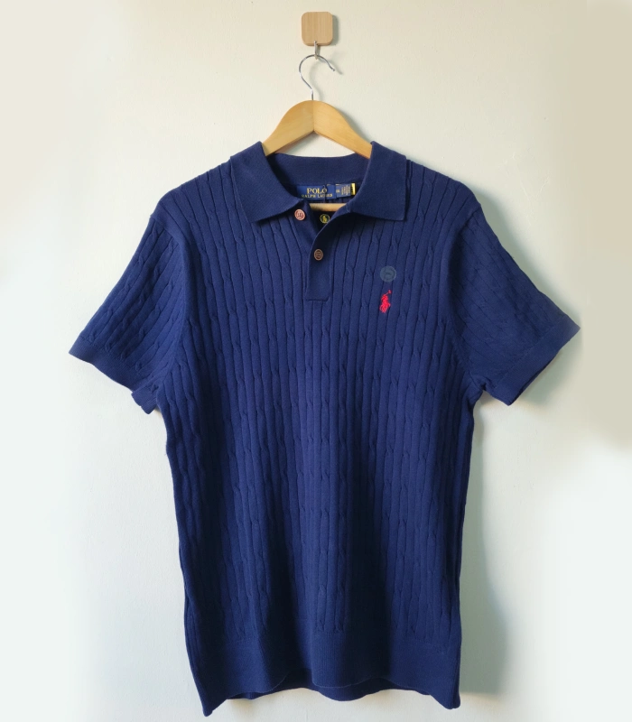 Ralph Lauran Cable Knit Short Selves Polo Navy Blue