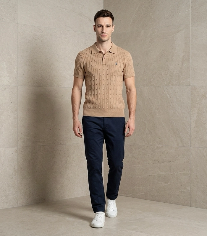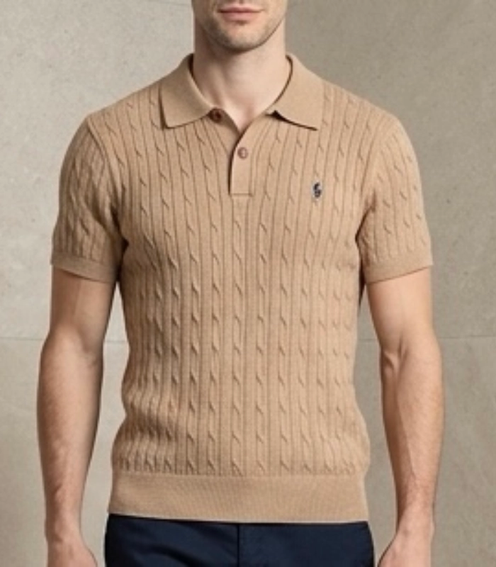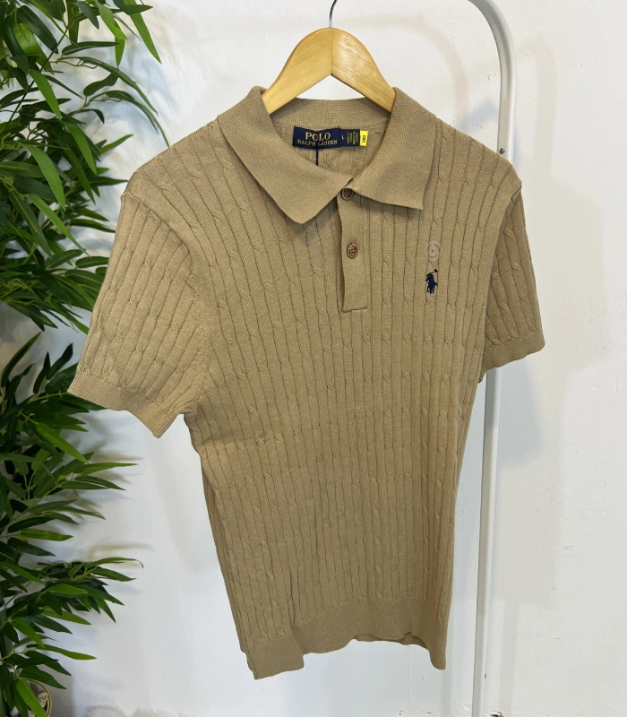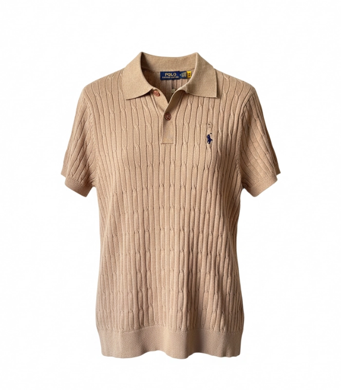 Ralph Lauran Cable Knit Short Selves Polo White Beige