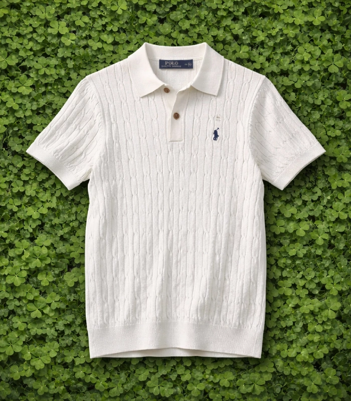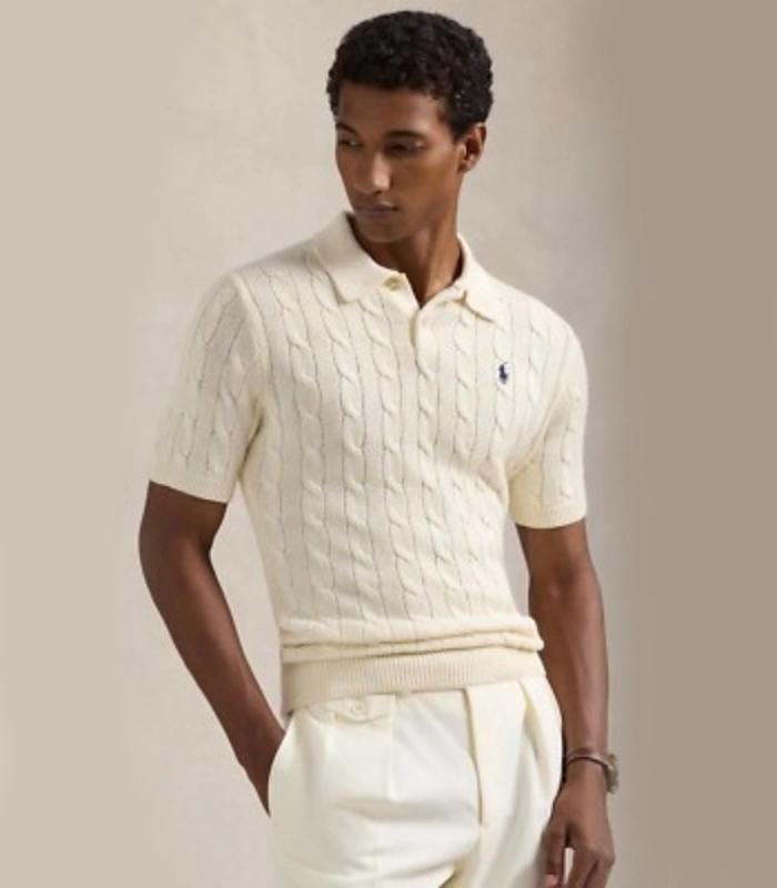 Ralph Lauran Cable Knit Short Selves Polo White