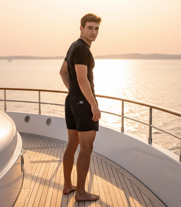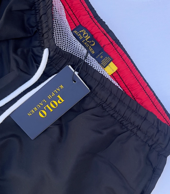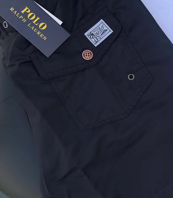 •Side on-seam pockets. Back right buttoned pocket. •Polo Ralph Lauren Swimwear” label at the back pocket.